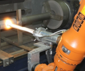 Metallisation supplied the blast booth, spray room and extractor, as well as the Met-PCC (HVOF-L) liquid fuel spray system, an MK74 powder flame spray system and a Kuka robot. Another key attraction for B&B Coatings was the Met-PCC (HVOF-L) system due to the easy operator interface providing a reliable, repeatable mass flow control in the background. The control of the HVOF unit is via an intuitive touchscreen interface that runs on Windows OS, which is easy to integrate into the existing factory network. The system provides full process SPC data that enables the operator to produce a ‘birth certificate’ for every job showing the parameters used at every stage of the coating. The simplicity of the METJET-4L HVOF pistol was also appealing to B&B Coatings and has since proven itself to be reliable, easy to operate and maintain. An MK74 hand held or robot mounted powder flame spray system was also supplied to enable the company to cost effectively market a good quality ceramic coating for a relatively small investment. A mass-flow powder feeder was also supplied that can feed either the HVOF or the MK74 powder flame spray pistol.