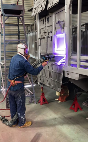 Livestock/Cattle trucks use the Arc Spray process to protect them from corrosion. The Metal Spray process has a significant advantage over Paint and Galvanising with animal transport vehicles and trailers. Not only does the surface have to be able to withstand wear (from the animal hooves etc.) that may contain erosive soil, but also the chemical effect of their urine and excrement. The use of Zinc in this application works within a pH range of 6 to 10. The urinary pH range for the cow, sheep, goat, and horse is ∼7.9 ± 0.5. For the pig, this range may extend to 6.5 ± 1.5, for cats and dogs 6.0 ± 1.0, and for humans 6.5 ± 1.5 (1). The diet of the animal is the major determinant of urinary pH levels.